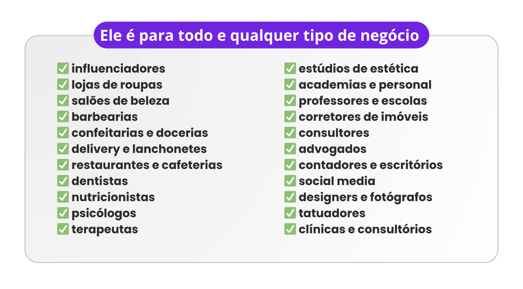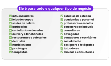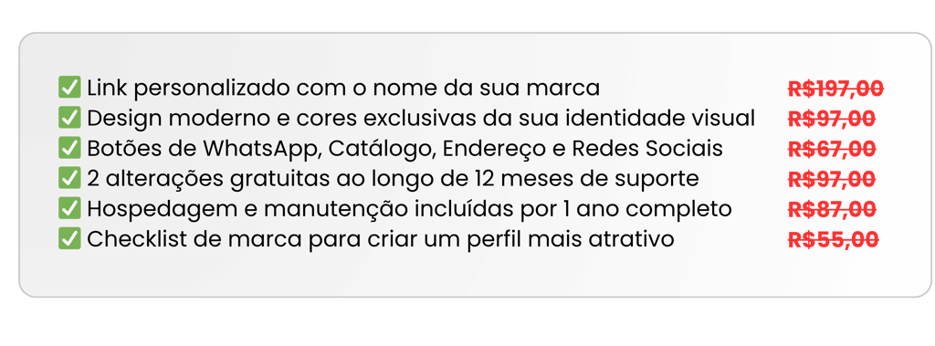 Nós criamos uma bio moderna, personalizada e com a identidade do seu negócio, pronta para gerar credibilidade e conversão.